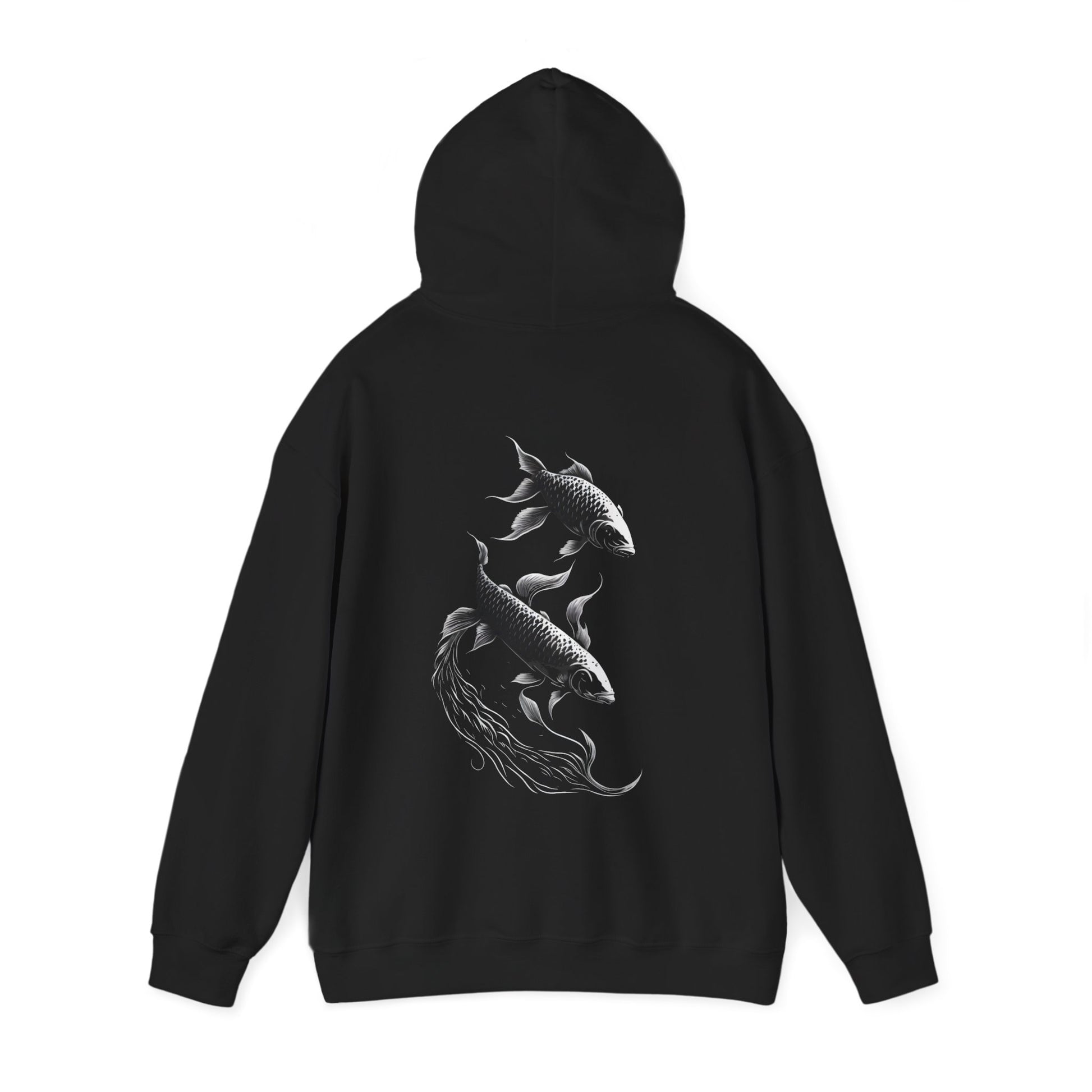 Dive into the depths of style and symbolism with our Two Fish Swimming Together Unisex Heavy Blend™ Hooded Sweatshirt. This captivating design goes beyond fashion, encapsulating the beauty and harmony of aquatic life in a silhouette that's as stylish as it is meaningful. Immerse yourself in the fluid grace of two fish moving in unison, their silhouettes weaving a tale of companionship and unity. Crafted with meticulous detail, the design captures the essence of underwater elegance, making it a distinctive and eye-catching addition to your wardrobe. This unisex heavy blend hooded sweatshirt is relaxation itself. Made with a thick blend of cotton and polyester, it feels plush, soft and warm, a perfect choice for any cold day. In the front, the spacious kangaroo pocket adds daily practicality while the hood's drawstring is the same color as the base sweater for extra style points. .: Made with a medium-heavy fabric (8.0 oz/yd² (271 g/m²)) that consists of 50% cotton and 50% polyester for that cozy feel and warmth you need in a hoodie. .: The classic fit along with the pouch pocket and the tear-away label make for a highly comfortable, scratch-free wearing experience. .: The color-matched drawcord and the double-lined hood add a stylish flair and durability that tie everything together. .: Made using 100% ethically grown US cotton. .: Fabric blends: Heather Sport colors - 60% polyester, 40% cotton